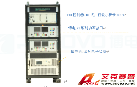 測試系統(tǒng)包括被測件鋰離子電池、NIPXIe-8133控制器、功率接口(北京博電自主開發(fā)的PI系列模塊化功率接口)、電子負(fù)載、充放電信號轉(zhuǎn)換板。