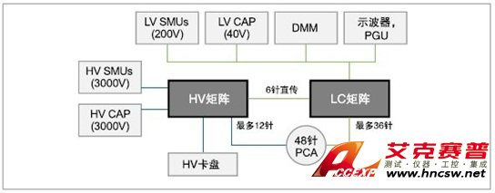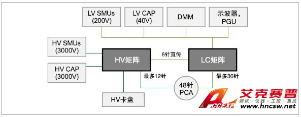 S540 是為用于擁有各種產(chǎn)品組合的環(huán)境而優(yōu)化的,可以配置 為12 針、24 針、36 針或48 針系統(tǒng)。有兩種主要配置:基本 高壓配置有12 針,高電壓/ 低電流配置則有12 針高電壓和 36 針低電流。這兩種配置都支持多條SMU ( 源測量單元) 通道、 兩端子和三端子電容測量、差分電壓測量以及脈沖和頻率測量。 所有測試引腳都連接到一張?zhí)筋^卡上,因此可以在一個(gè)探頭接 觸中執(zhí)行所有測試,最大限度地提高生產(chǎn)效率,最大限度地降 低擁有成本。