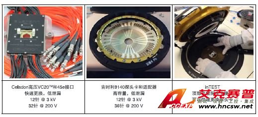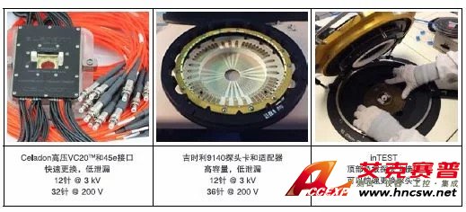 在多針全自動(dòng)生產(chǎn)測試應(yīng)用中進(jìn)行可靠的高壓測量帶來了許多 挑戰(zhàn),包括環(huán)境、器件布線和探頭設(shè)計(jì)。吉時(shí)利為探測最高 3k V 電壓、同時(shí)保持低電平測量性能提供了兩種優(yōu)質(zhì)解決方案: 吉時(shí)利9140 和Celadon 45E。此外,為簡化探頭卡安裝和拆卸, 我們作為出廠安裝選項(xiàng)提供了inTEST 頂部裝載探頭卡接口。