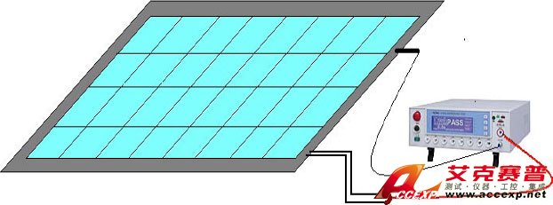 把短路的太陽能電池測試儀器模塊的輸出端口連接到直流絕緣試驗儀的正極側。
