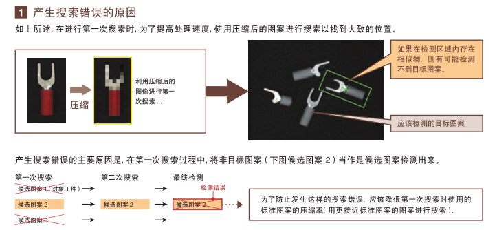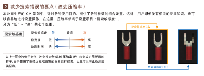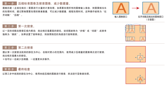 除了利用正規(guī)化相關(guān)法的圖案搜索之外,還有一種基于檢測對象輪廓的 “ 幾何形狀搜索 ”。本公司生產(chǎn)的 CV 系列“ShapeTrax” 就具有這樣的功能。“ShapeTrax” 根據(jù)輪廓數(shù)據(jù)進行搜索,因此在搜索對象有缺損時,也可以根據(jù)殘留的形狀數(shù)據(jù)進行正確的搜索。除此之外,還可以根據(jù)對象的尺寸的變化、黑白反轉(zhuǎn)等表面狀態(tài)的變化做出正確的處理,從而可以確保檢查效果。