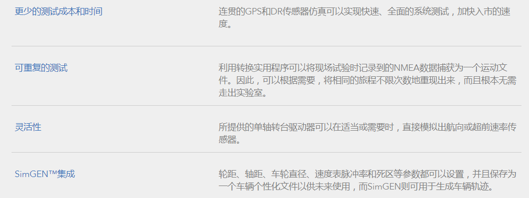 人們都希望在GPS失聯(lián)后快速捕獲信號,并且獲得足夠的精度和完整的功能,而這種需求也推動了對使用DR傳感器等混合系統(tǒng)的開發(fā)。為了對此類系統(tǒng)進行測試,DR和GPS信號必須以連貫的方式生成。SimAUTO能夠有效地仿真DR傳感器,例如羅盤、陀螺儀和輪速信號,并且將它們與思博倫的GPS/GNSS星群模擬器系列精準地協(xié)調(diào)起來,為集成式導(dǎo)航系統(tǒng)提供一個完整的測試環(huán)境。