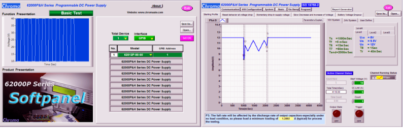 為協(xié)助使用者縮短測試的前后期作業(yè)時間,致茂的62000P與62000H系列可編程直流電源供應(yīng)器可透過該公司自行研發(fā)的Softpanel軟體,以圖形化介面輕松選擇各種測試配置。除了ISO標(biāo)準(zhǔn)外,VW80000、GS95024-2-1等一線國際車廠自行制定的測試規(guī)范,也在Softpanel的支援范圍內(nèi)。該軟體還支援報表自動產(chǎn)出功能,用戶可以省下手動紀(jì)錄的功夫。