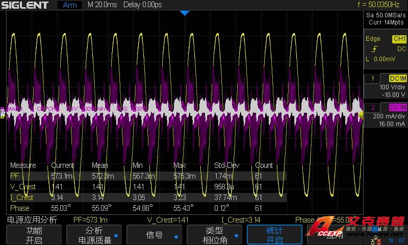 我們通過測試功率和分析諧波來展示SDS2000X的電源分析功能。