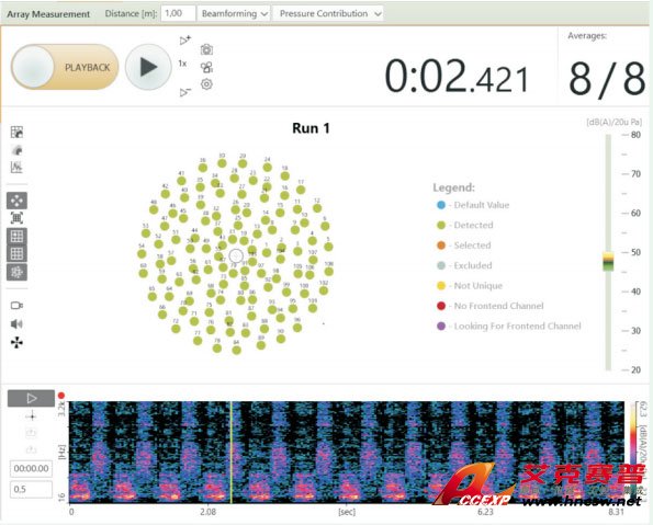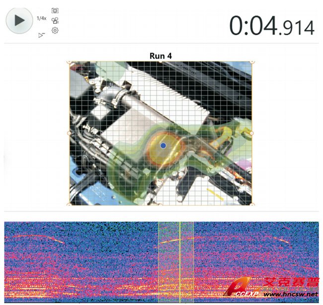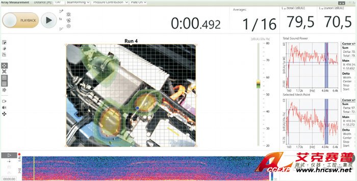 但是,這項(xiàng)工作還尚未完成。測試的結(jié)果必須報(bào)告給同事,或管理層,更改建議必須再次實(shí)施并測試。聲學(xué)相機(jī)在這里也可以提供幫助。它不僅可以提供噪聲云圖,還可以提供頻譜圖、聲功率圖和視頻,以供記錄和比較之用。錄制的測試也可以以較慢速度重放,以調(diào)查短期事件。這些功能顯示出了聲學(xué)相機(jī)在故障排除,異響檢測和客戶投訴評(píng)估方面的價(jià)值。