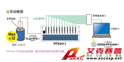 PFX2411工作,必須使用專用應用軟件(SD008-PFX2400)。在配置系統時,除本產品和應用軟件外,還需要有計算機、網絡集線器、LAN電纜、負荷電纜(選購件)。