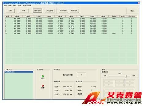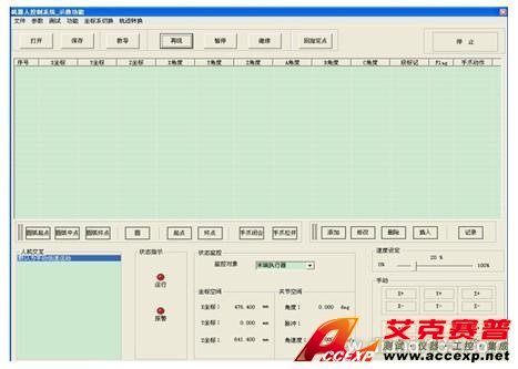 參數(shù)設(shè)定功能:運(yùn)動(dòng)參數(shù)、安裝坐標(biāo)、末端執(zhí)行器坐標(biāo)設(shè)定
