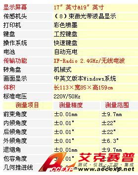 | 設計了調整前、后的定位資料,配備了彩色噴墨打印機依照客戶需求列印出資料 | 備有一萬多種定位車型資料庫,還可自行增加新車種資料,或需廠家升級 | |