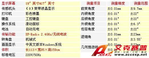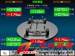 | 測量系統:外傾角設計了以車輪傾斜和顏色的變化來區分;總前束、獨立前束設計了以車輪的變動和顏色來區分 | 單獨的測量系統:(外傾角)功能畫面設計了,以車輪傾斜變化和顏色的區分不復雜,清晰及容易解說 | |