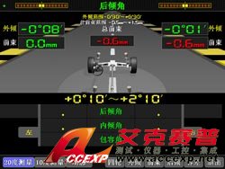 | 舉升調整測量系統:功能畫面設計了,可以在輪子離開地面傾斜的情況下完成定位角度的調整 | 前束測量 |