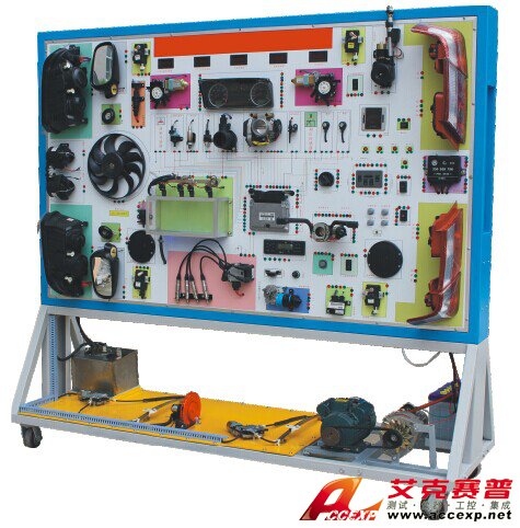 在整車電器基礎上,配備各相關輔助控制裝置,可如原車一樣實際演示起動、充電、燈光、儀表、雨刮、中控門鎖、車身防盜、電動窗、音響系統等全套整車電器設備的工作原理和過程;