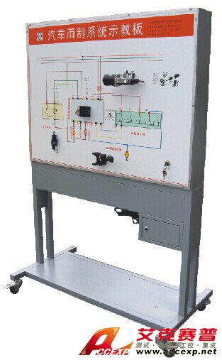 雨刮開關、雨刮控制繼電器、雨刮聯動機構、雨刮電機、噴水電機、噴水壺、噴水嘴、故障設置系統、電源、彩色原理與結構圖、控制面板、可移動臺架、使用說明書及實訓指導書等。