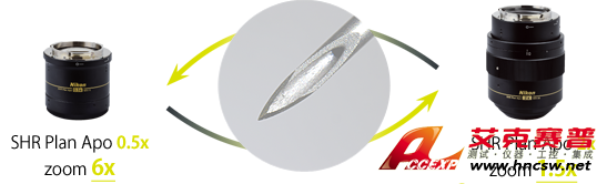 尼康新開發的SHR Plan Apo系列物鏡,提供1100LP/mm 的高分辨率。全新SHR Plan Apo系列物鏡同時具備有極其出色的畫質與逼真的色彩。