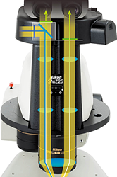 尼康新開發的光學系統即使在高倍下亦極大地提升了圖像信噪比。此系統甚至可用于細胞分裂的拍攝,而此功能使用傳統的體式顯微鏡是極難做到的。