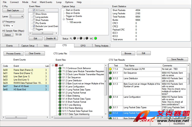 Envision X84支持在C-PHY和D-PHY(80Msps – 2.5Gbps)的整個數(shù)據(jù)范圍內(nèi)進(jìn)行驗證。C-PHY每秒支持高達(dá)3.5 GigaSymbols或每個樣本約3.16位。每個通道2.5Gbps x3.16 = 7.9Gbps Envision X84最多支持3條C-PHY通道,并具有從三重奏真正的時鐘恢復(fù)功能。它最多支持4條D-PHY通道,并具有用于直接控制攝像頭和顯示器的GPIO接口。