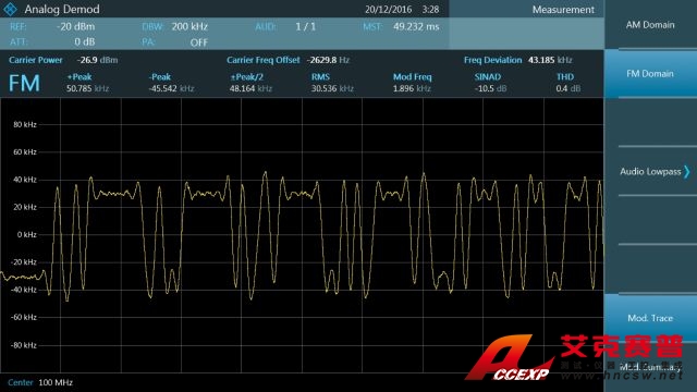 基本數(shù)字調(diào)制格式被用于多種應(yīng)用,例如近場通信。R&S FPC 支持 ASK 和 FSK 分析。數(shù)字調(diào)制顯示屏包括軌跡、眼圖、調(diào)制誤差和符號分析。此外,還提供低功耗藍(lán)牙 (Bluetooth LE) 和胎壓監(jiān)測系統(tǒng) (TPMS) 的專有配置預(yù)設(shè)。通過內(nèi)置揚聲器或耳機(jī)插孔支持解調(diào)音頻。
