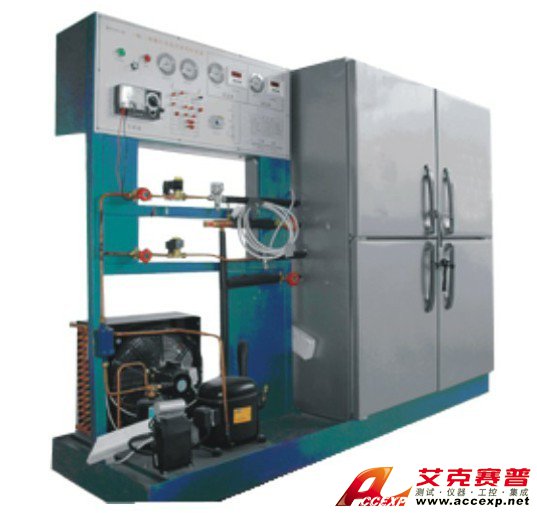 (5) 一機兩庫制冷系統流程板: 要求面板上印有真實的一機兩庫庫制冷系統系統流程圖,配有2只溫度控制器(分別測量和控制高溫庫和低溫庫的溫度)、1只冷庫專用化霜定時器(用于低溫庫);