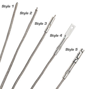 端接:帶補償鏟形接線片的陶瓷串珠式導線、OMEGA®公連接器或OMEGA® NHXH耐高溫650°C (1200°F)陶瓷公連接器OMEGA獨有的耐高溫J、K、E或N型熱電偶系列