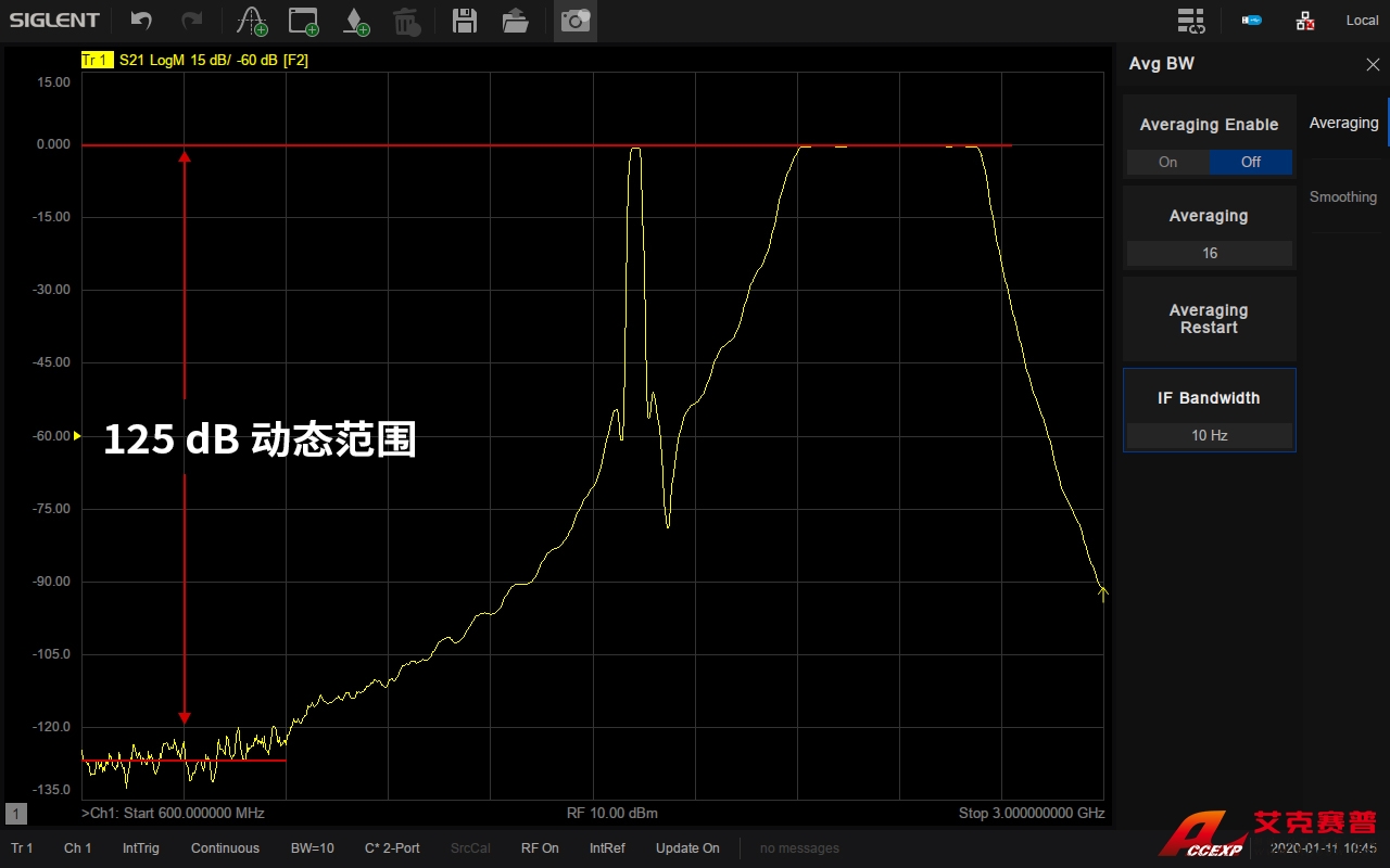 簡(jiǎn)介:低噪聲,高動(dòng)態(tài)范圍系統(tǒng)動(dòng)態(tài)范圍是VNA一個(gè)非常重要的指標(biāo),它是VNA源的最大輸出功率與測(cè)試端口本底噪聲的差值。SNA5022A 擁有最大125 dB的動(dòng)態(tài)范圍,可適用于對(duì)動(dòng)態(tài)范圍要求比較高的測(cè)試場(chǎng)景,比如同時(shí)測(cè)量濾波器的通帶和帶外抑制性能。...