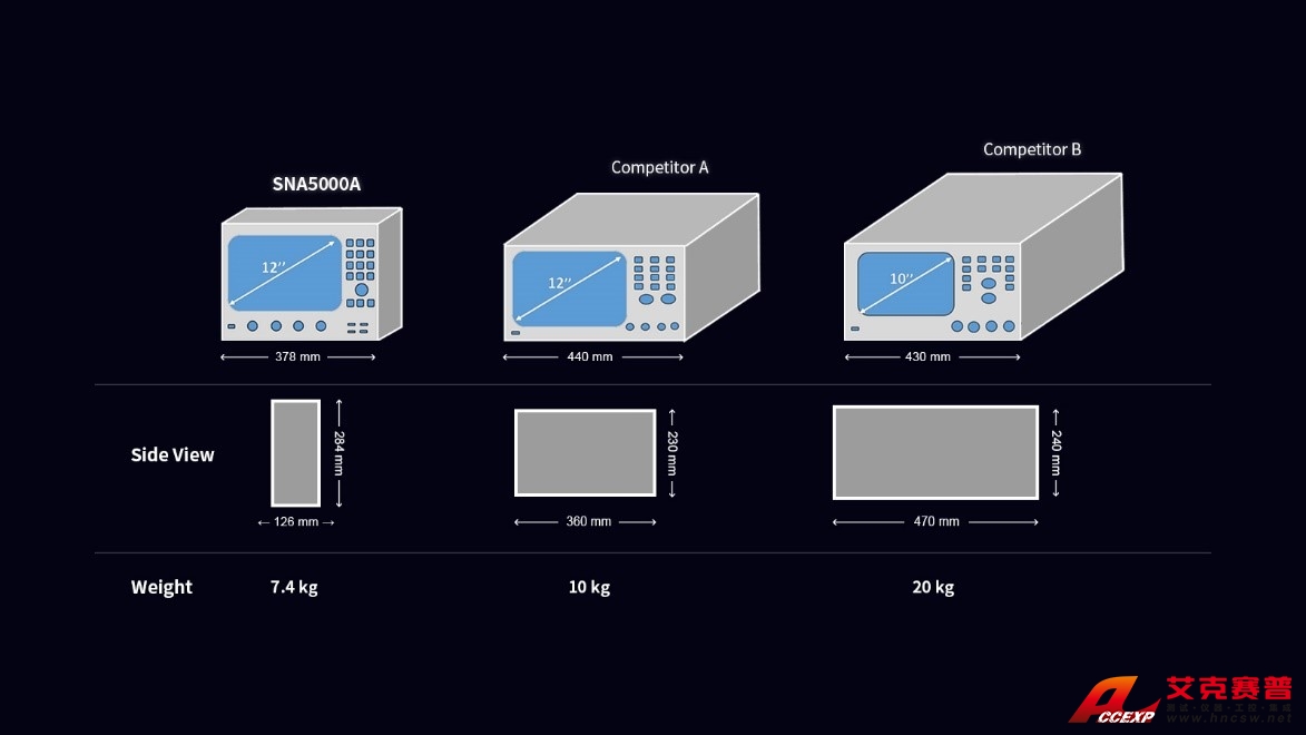 不管是在研發(fā)還是在現(xiàn)代化的生產(chǎn)線(xiàn),區(qū)別于傳統(tǒng)笨重的矢量網(wǎng)絡(luò)分析儀,SNA5022A 超前的外觀設(shè)計(jì)都能為工程師或者產(chǎn)線(xiàn)節(jié)省大量的桌面空間。