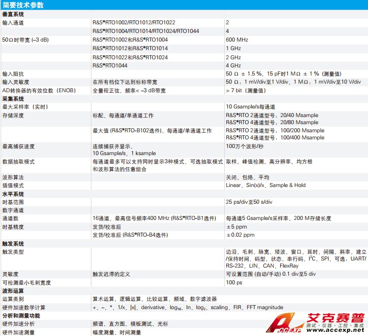 以下是艾克賽普為您整理的羅德與施瓦茨 R&S RTO 數字示波器的簡要技術參數,如有相關問題,請聯系長沙艾克賽普儀器儀表公司