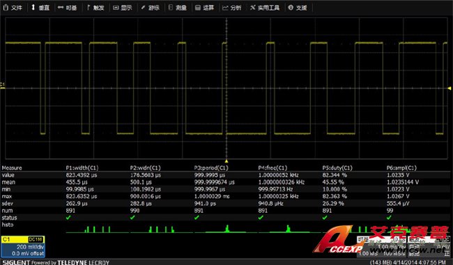 鼎陽SIGLENT SDS3104X智能示波器提供24種參數的測量統計功能,不丟失任何細節,真正做到測量所有捕獲到的波形參數。