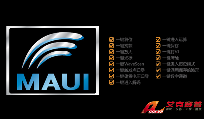 | 觸發類型 | 邊沿,脈寬,判定合格,邏輯圖,TV,窗口,間隔,漏失,欠幅,斜率,I2C,I2S, SPI,UART/RS232,LIN,CAN,CAN-FD,FlexRay,MIL 1553,USB 2.0 |