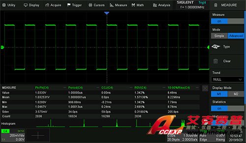 | 自動測量 | 數十種自動測量功能,支持測量統計、Gating 測量、Math測量、History 測量、Ref 測量。支持對測量參數的直方圖和趨勢圖統計 |