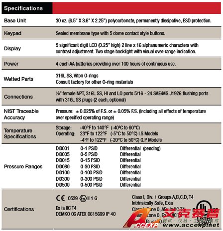 簡介:美國 Meriam M200-DI 濕/濕差壓智能壓力計的詳細介紹 Smart Manometer M200-DI AdvantagesAccuracy 0.05% FS or optional 0.025% F.S. No tempera...