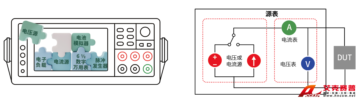 ?集六種設備功能于一體:電壓源、電流源、6 ?數(shù)字萬用表(DCV,DCI, ohms)、電池模擬器、電子負載及脈沖發(fā)生器