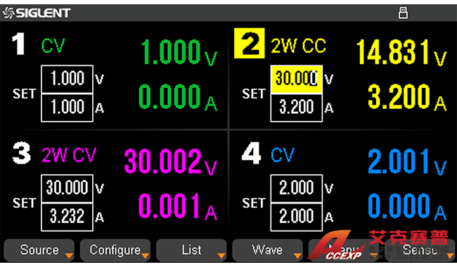 SPD4000X系列支持 4W Sense 模式,能自動(dòng)補(bǔ)償正負(fù)輸出線的壓降,保證遠(yuǎn)端待測(cè)設(shè)備得到電壓等于電源設(shè)置電壓,在高精度的測(cè)試或者線纜很長(zhǎng)的場(chǎng)合可以發(fā)揮重要作用