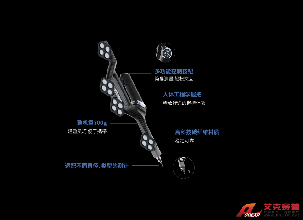 航天級碳纖維材質(zhì)掃描儀i-Scanner,球形設(shè)計(jì)結(jié)構(gòu),堅(jiān)固耐用;搭配一體式人體工程學(xué)控制握把,便于長時(shí)間單手靈活移動掃描儀,讓技術(shù)人員在不同的測量場景中,更加敏捷自如,帶來人機(jī)合一的掌控感。