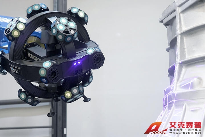 采用純藍(lán)光和同步追蹤光學(xué)技術(shù),掃描速率高達(dá)1,900,000次測(cè)量/秒,精度可達(dá)0.025 mm,精度不受機(jī)器人、導(dǎo)軌等因素影響,實(shí)現(xiàn)高效靈活的自動(dòng)化制造工藝。