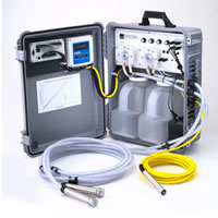 流量比例混合水采樣器裝在一個堅固、防雨的帶鎖攜帶箱內(nèi),包括聚乙烯廢水采樣瓶用于收集混合水樣、蠕動采樣泵、控制面板和可充電電池,以及進樣管和電池充電器??蛇x玻璃采樣瓶、便攜式冷卻器、便攜式冰袋容器等。