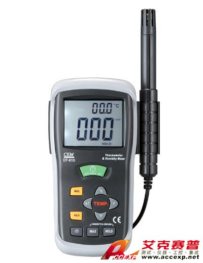簡介:華盛昌CEMDT-625系列二合一專業溫濕度儀產品系列 DT-615/625/616CT專業溫濕度儀 本儀器可用于測量相對濕度,空氣溫度(用探頭),及K型熱電偶寬范圍測溫。超大、易讀的帶背光源液晶顯示屏含有雙重多種提示符。 華盛昌CEMDT...