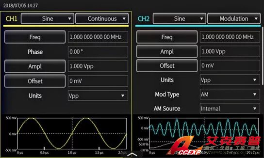 在基本模式下,AFG31000 生成傳統函數和任意波形。觸摸屏和前面板控制功能可以簡便地進行設置。