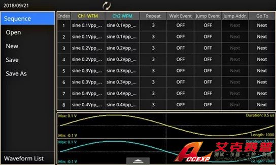 AFG31000 系列是第一個擁有全功能基本模式(AFG)和高級(序列)模式的任意波函數發生器。