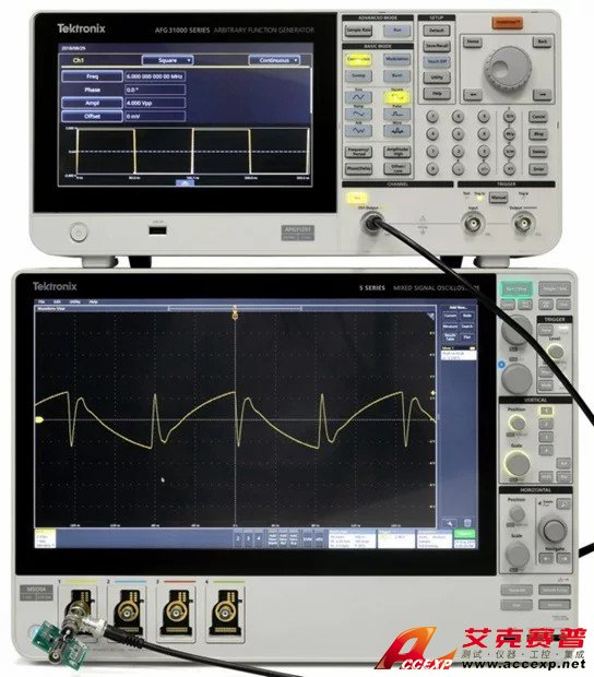 大多數波形發生器默認被測器件的阻抗是 50 Ω。但是,大多數被測器件的阻抗并不是 50 Ω。這種不匹配會導致 AFG 上設置的波形與 DUT 上的實際信號不一致。