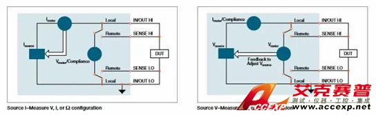 數字源表能進行標準4線、分裂Kelvin以及6線、帶防護的電阻測 量并且能配置為恒流或恒壓方法。6線測量方法: