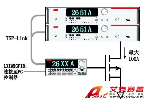 此外,兩臺2651A 型采用TSP-Link 并 聯(lián)時(shí),電流量程從50A 擴(kuò)展至100A。 當(dāng)兩個(gè)單元串聯(lián)時(shí),電壓范圍從40V 擴(kuò) 展至80V。內(nèi)置智能特性使多個(gè)單元可 作為單臺儀器進(jìn)行尋址,簡化了測試, 由此形成業(yè)內(nèi)最佳的動(dòng)態(tài)范圍(100A 至 1pA)。這種能力確保用戶可測試各種各 樣的功率半導(dǎo)體和其他器件。