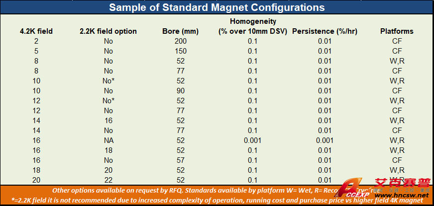 濕式磁體可提供在2 K時達8-20 T標(biāo)準(zhǔn)選項