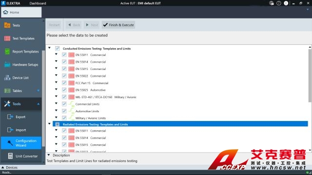 - 提供預定義模板,涵蓋常用 EMC 標準