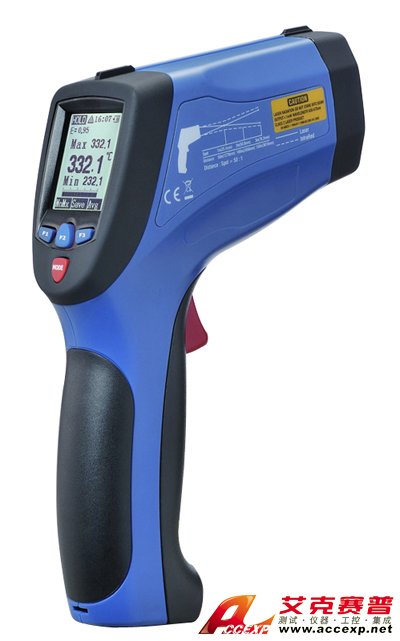 高的光學測量距離與物體目標比(D:S),便于測量不易靠近的目標。 測溫量程范圍寬-50.0ºC~1200ºC(-58.0~2192ºF) 獨特新式的機殼設計 內置4個激光瞄準點,可以快速,準確的瞄準目標 數據保持功能可保存數值,便于操作者準確讀取測量數值。 MAX,MIN,DIF, AVG 溫度顯示 自動關機和高低溫報警裝置 發射率調整設置(0.1~1.0),可以根據需要調整發射率 ºC/ºF可轉換和超量程提示 USB接口和扳機鎖定 帶有白色背光的液晶顯示屏 K型輸入和數據存儲